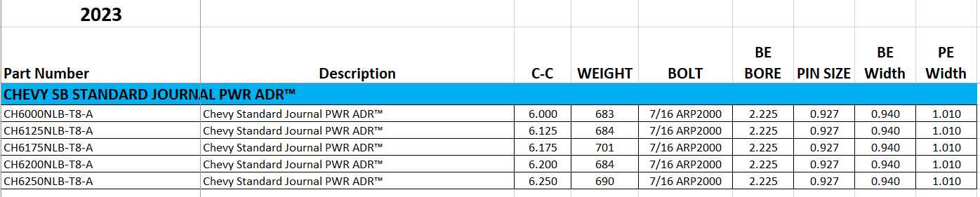 Click the button below to add the MOLNAR SBC PWR ADR Billet H-Beam Rods - STD JOURNAL - 6.125" to your wish list.