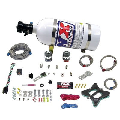 Loading... Please wait...Is your 4.6 liter 2 valve motor a little light on torque and horsepower? NX has the solution to your problem! The Nitrous Express 4.6L 2-Valve Plate System feature's Phase 3 Spraybarless technology for the ultimate in atomization and distribution. The billet plate bolts between the throttle body elbow and the intake making installation quick and easy. This system includes Lightning series nitrous and fuel solenoids. Also includes is a wide open throttle switch so the nitrous only activates at wide open throttle and automatically turns off when you let your foot off the accelerator. To make installation even easier, ford fuel rail adapter fitting is included so there is no need to splice into the factory fuel lines. The system includes jetting from 35 to 150 horsepower and can be upgraded to 300 horsepower with additional jets. Includes 10lb bottle, braided stainless lines, stainless bottle brackets, four color installation manual, arming switch as well as every nut, bolt and electrical connector needed to complete the installation. Fits 1996-2004 GT mustangs and other 2 Valve 4.6L Fords.
